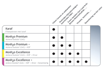 koolstoflaag (coconut) die slechte smaken en geuren (chloor,