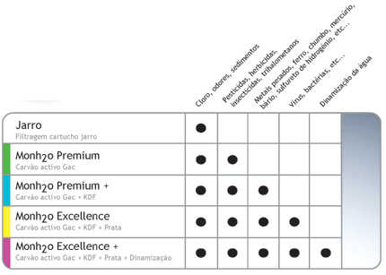 cartuchos diferentes, de acordo com a qualidade da água.